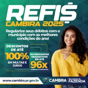 REFIS Cambira 2025 entra na reta final. Dias 28 de novembro é o último prazo 19 de novembro de 2025 Ler notícia