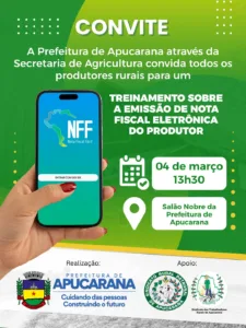 Treinamento gratuito da Prefeitura de Apucarana orienta agricultores sobre uso do aplicativo de emissão da nota fiscal eletrônica 2 de março de 2026 Ler notícia