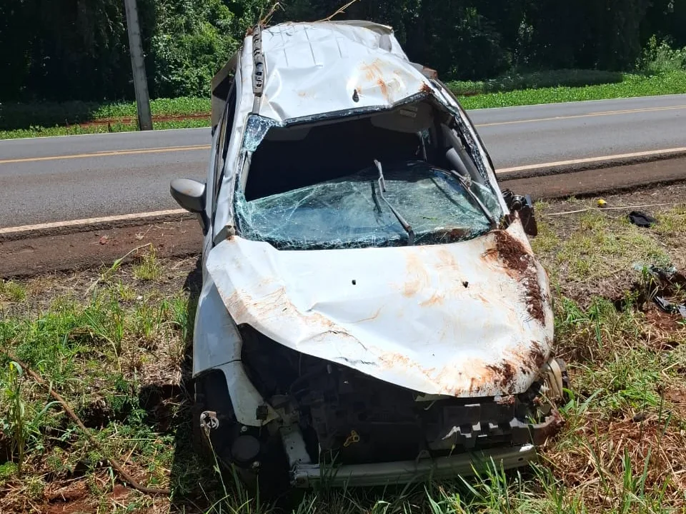 Um capotamento foi registrado na manhã desta quarta-feira, 31 de dezembro de 2025, na rodovia PR-082, no km 356 mais 800 metros, em um trecho conhecido como Mata da Suíça, no município de São João do Ivaí.