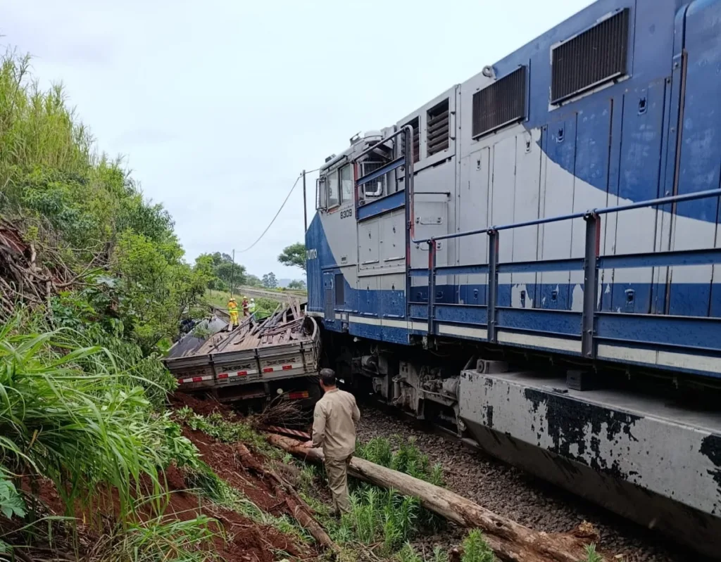 O caminhão transportava carga destinada a uma empresa localizada próximo à linha do trem. As causas do acidente ainda serão apuradas.