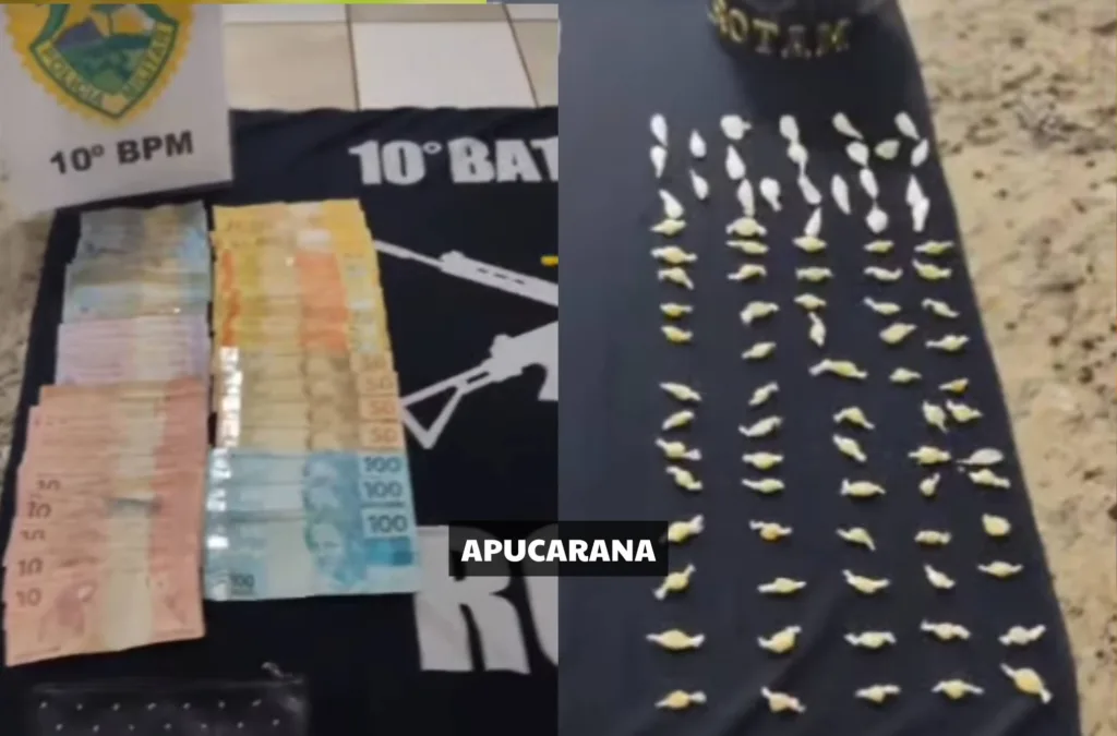 Durante o patrulhamento, os policiais avistaram um homem em frente à residência que, ao notar a aproximação da viatura, gritou para alertar a moradora. Nesse momento, a equipe visualizou a mulher arremessando um objeto pela janela da sala. Após a verificação, constatou-se que se tratava de entorpecentes: 62 porções de crack (14,3 gramas) e 23 porções de cocaína (7,7 gramas).