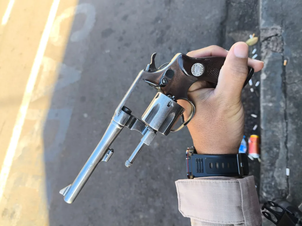 A Polícia Militar prendeu três pessoas e apreendeu um revólver calibre .32 durante uma ocorrência registrada na manhã desta quinta-feira, 20 de novembro de 2025, em um estabelecimento comercial localizado na Avenida Arapongas, região central da cidade.