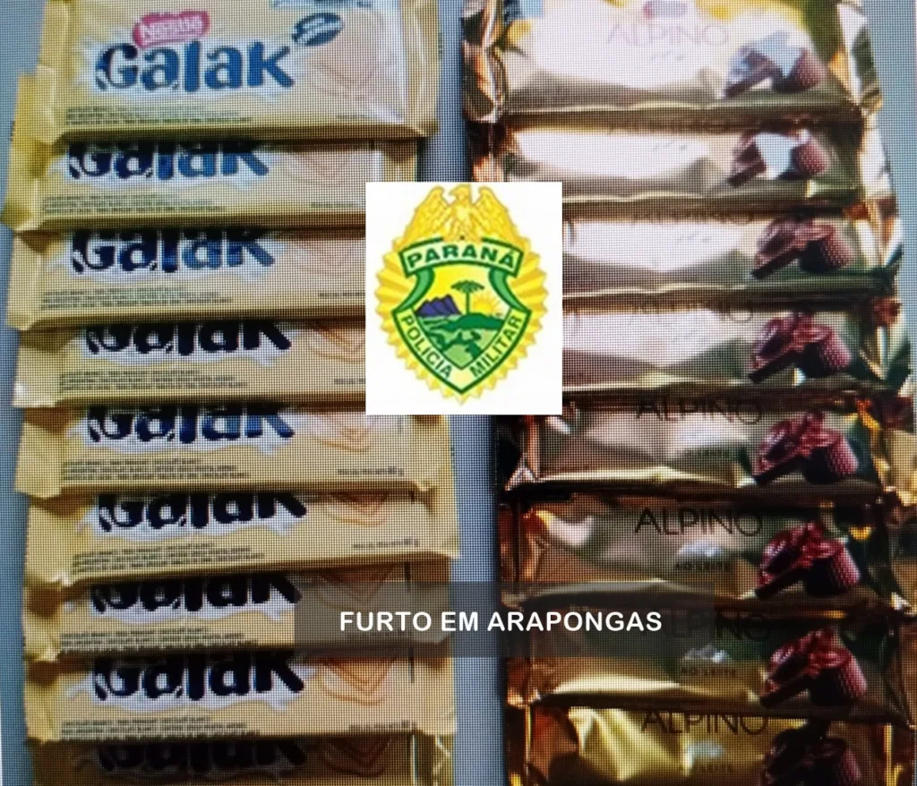 A Patrulha de Proximidade da Polícia Militar foi acionada na manhã desta quinta-feira, 13 de novembro, por volta das 9h45, para atender a um caso de furto simples em um estabelecimento localizado na Avenida Arapongas. No local, o solicitante relatou que, pouco antes, por volta das 9h20, viu um indivíduo colocando barras de chocolate dentro da calça. Ao notar que havia sido observado, o suspeito saiu rapidamente do comércio. O gerente decidiu segui-lo e conseguiu abordá-lo na via pública. Com a chegada da equipe policial, foi constatado que o homem carregava 17 barras de chocolate. Em revista pessoal, nada mais de ilícito foi encontrado. Ele admitiu o furto, disse ser usuário de drogas e afirmou que venderia os produtos. Diante da situação, o homem recebeu voz de prisão pelo crime de furto e foi conduzido à Delegacia da Polícia Civil de Arapongas, juntamente com as barras recuperadas, para as providências legais cabíveis.