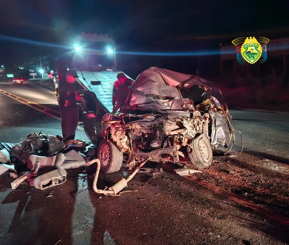 De acordo com informações apuradas no local, o sinistro aconteceu por volta das 22h00, no km 7 mais 100 metros da rodovia. A colisão frontal envolveu um Volkswagen Gol, com placas de Arapongas, e um caminhão Mercedes-Benz Atego, emplacado em Itajaí, Santa Catarina.