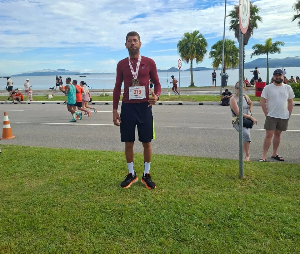Alínio participou da tradicional Corrida da Virada, realizada na Beira-Mar Continental, em Florianópolis. Na prova, ele alcançou a 10ª colocação na classificação geral e garantiu o primeiro lugar em sua categoria, encerrando o ano com mais um pódio importante. Em mensagem enviada ao Blog do Berimbau, o atleta comemorou o resultado e agradeceu o apoio.