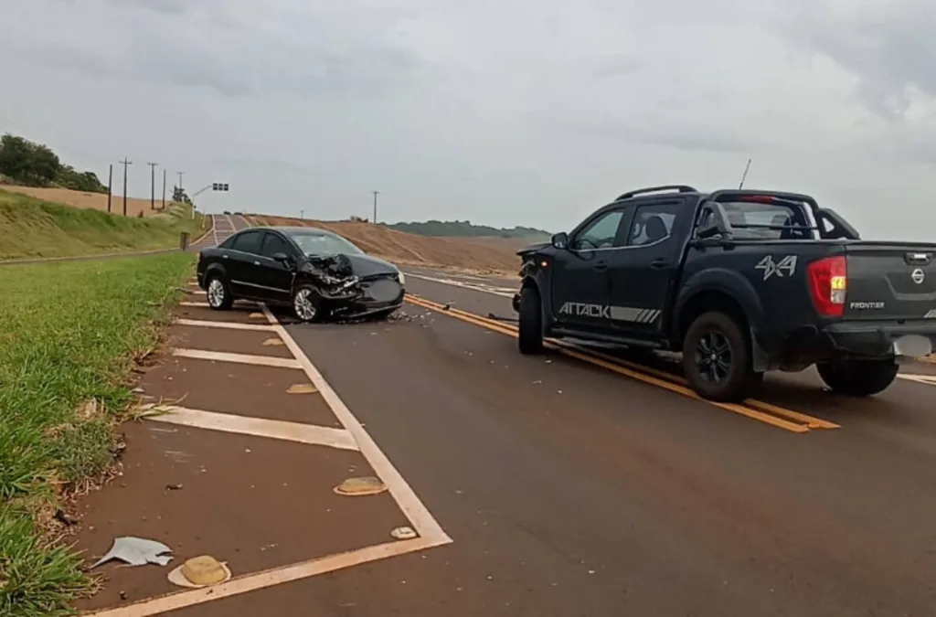 De acordo com a Polícia Militar, que foi acionada para atender a ocorrência, dois veículos se envolveram no acidente e ficaram sobre a pista, obstruindo parcialmente a via. A batida envolveu uma caminhonete Nissan Frontier emplacada em Apucarana e um Fiat Linea, emplacado em Cruzmaltina, conduzido pela Lelissa Murara.