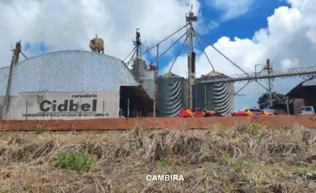 Um princípio de incêndio mobilizou equipes do Corpo de Bombeiros na empresa Cidbel, em Cambira, às margens da BR-376, na entrada do município. O fogo teve início em uma esteira que transporta grãos para os silos, gerando muita fumaça e brasas no interior do barracão.