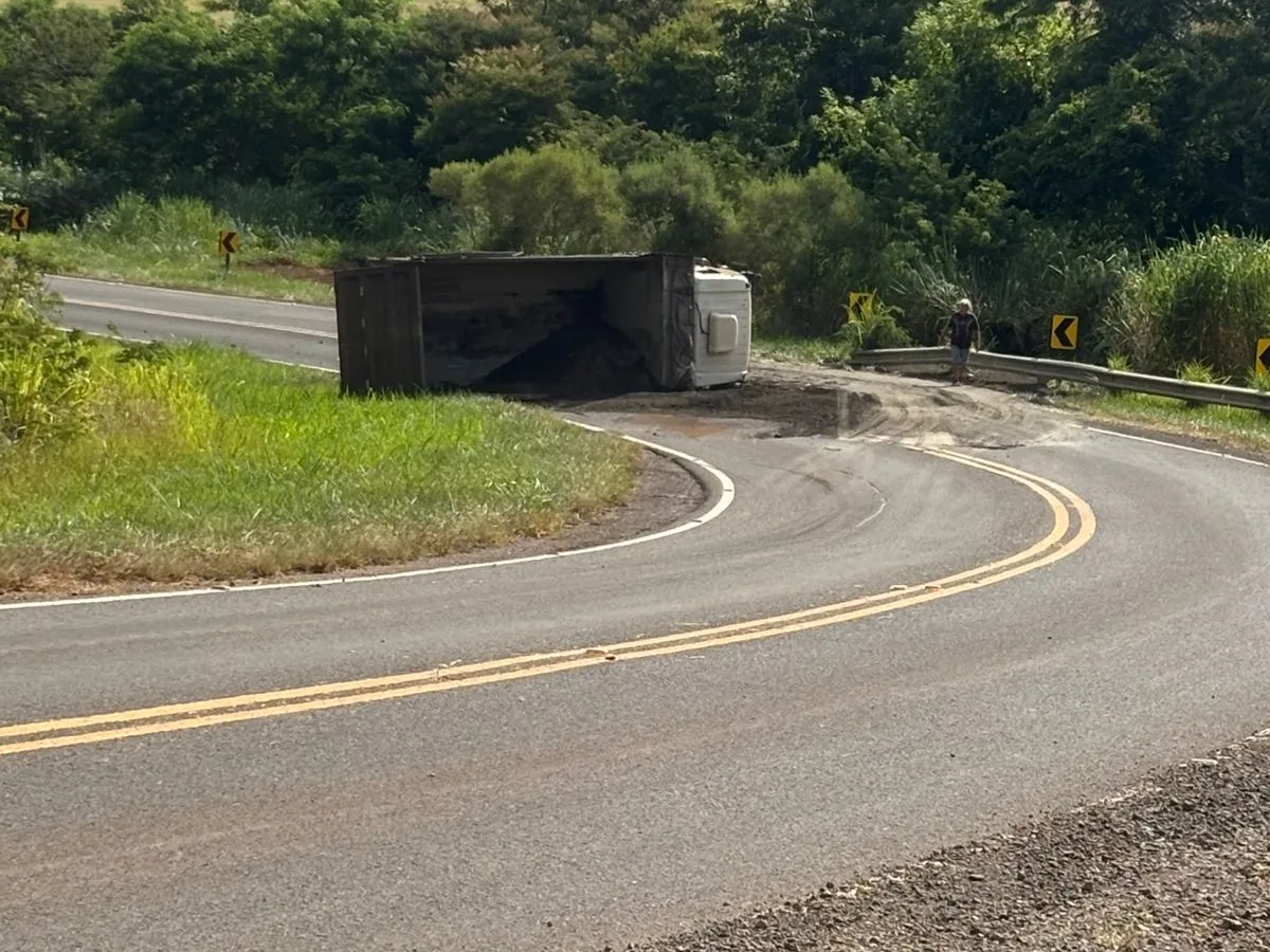 Ainda de acordo com o morador, após passar pelo radar existente no trecho, ele conseguiu entrar em uma estrada rural, momento em que o caminhão seguiu pela rodovia. Na sequência, o veículo de carga tombou ao tentar fazer a curva. Trata-se de um Ford/Cargo, condutor O. C. F. N., 60 anos.