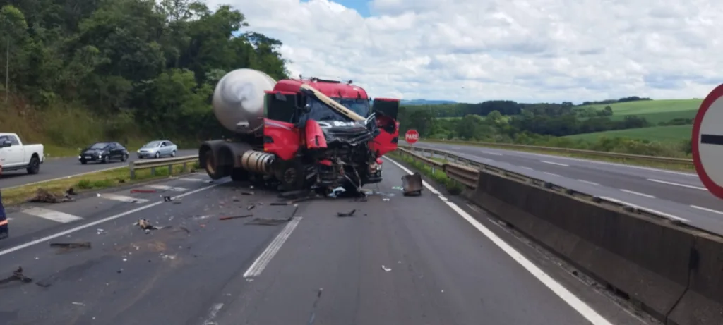 De acordo com informações da Polícia Rodoviária Federal, a ocorrência foi uma colisão traseira envolvendo dois caminhões. Em razão do impacto, três pessoas sofreram ferimentos leves e receberam atendimento no local.