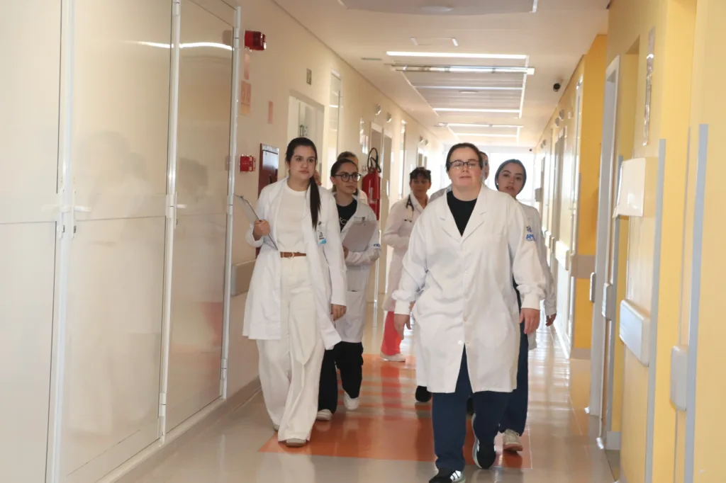 Um grupo de acadêmicos de Medicina da Fatec Ivaiporã caminha de jaleco branco e em silêncio pelo corredor do Hospital Regional. Está aprendendo a ouvir. Antes de exames ou diagnósticos a formação começa no diálogo.