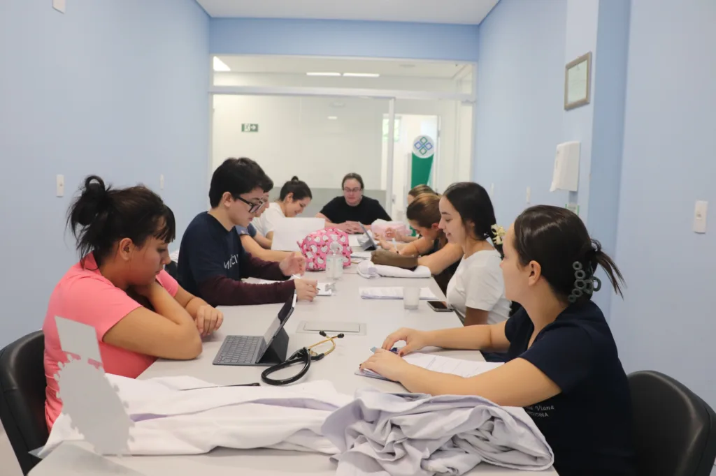 No Hospital Regional, o aprendizado envolve raciocínio clínico estruturado. Sob orientação da médica intensivista Annika Paula Cecagno, responsável pela disciplina de Habilidades Médicas, os acadêmicos do 4º período são desafiados a investigar casos sem conhecer previamente o diagnóstico.