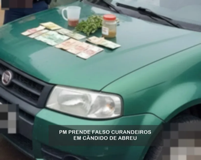 Dois homens foram presos pela Polícia Militar após aplicarem golpes em moradores do bairro Campão, em Cândido de Abreu, se passando por curandeiros e utilizando supostos rituais espirituais para induzir vítimas ao erro. A ocorrência envolveu crimes de estelionato, ameaça, constrangimento ilegal, falsa identidade e associação criminosa.