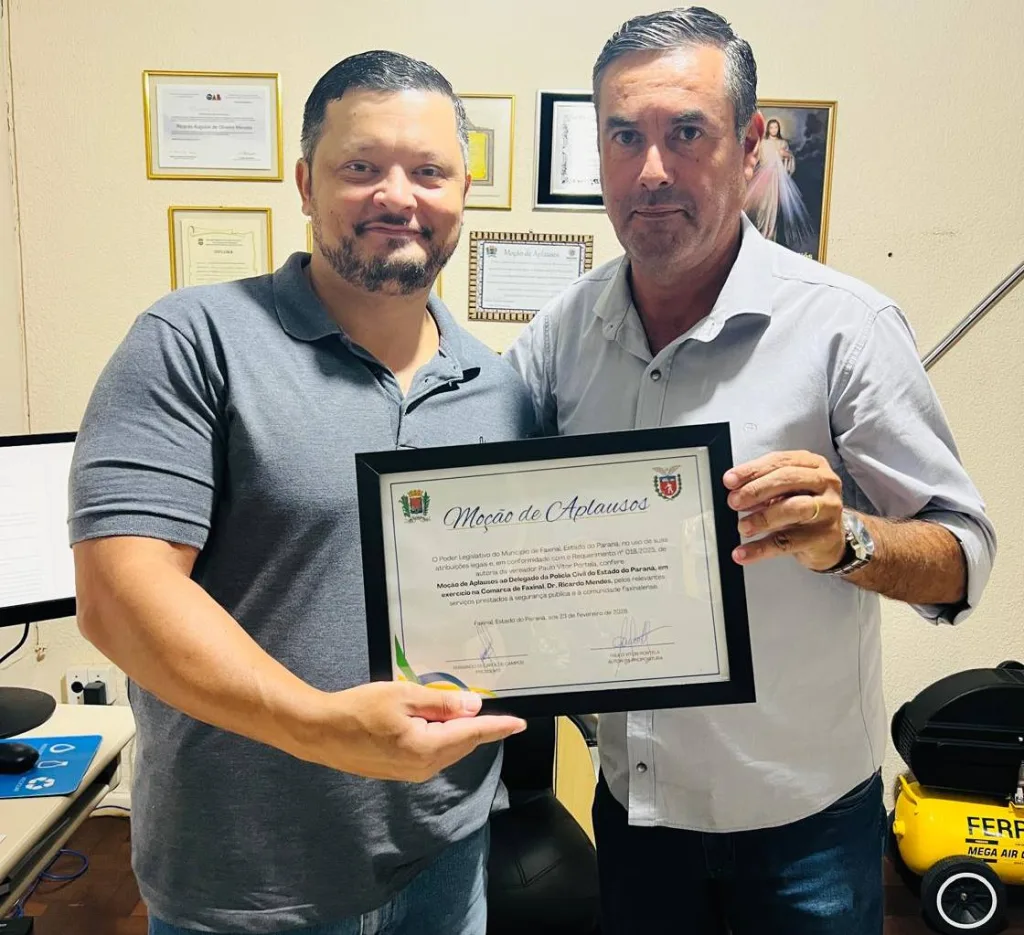 A homenagem, proposta pelo vereador faxinalense Paulinho Portela, destaca os relevantes serviços prestados à comunidade, evidenciando o compromisso, a competência e o empenho do delegado no combate à criminalidade e na promoção da justiça.