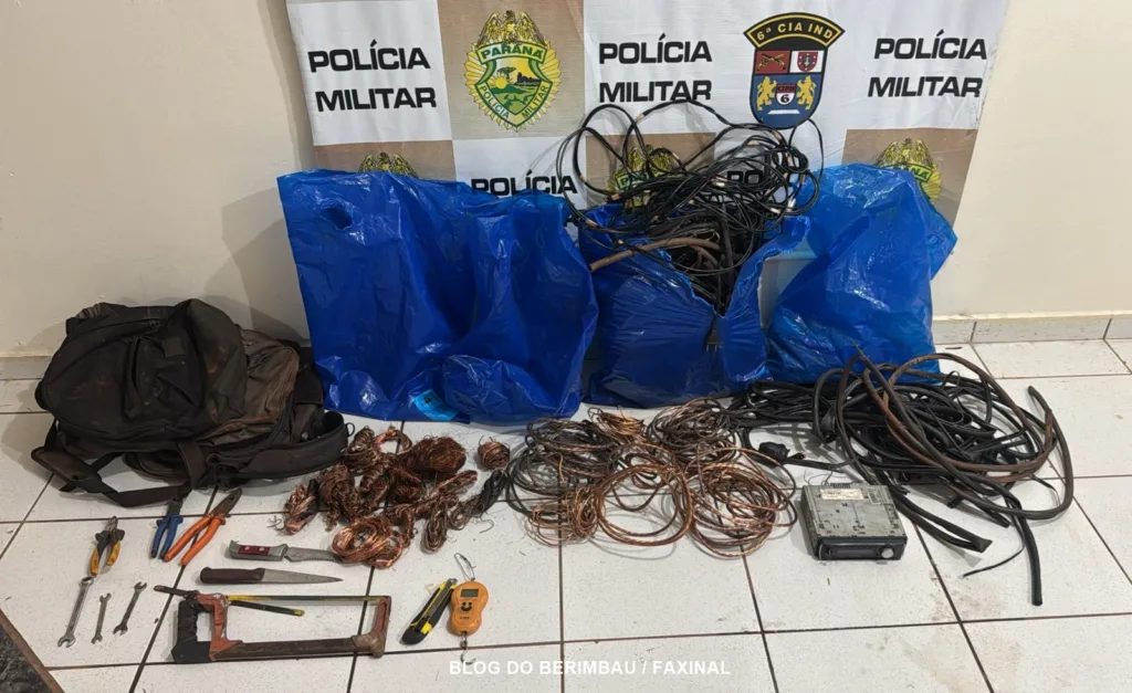 A ação resultou na prisão dos dois envolvidos, apreensão de um veículo, recuperação de 11,250 quilos de cobre e diversas ferramentas comumente usadas na prática de furtos. A ocorrência foi atendida pelos soldados Miranda e Tedeschi.