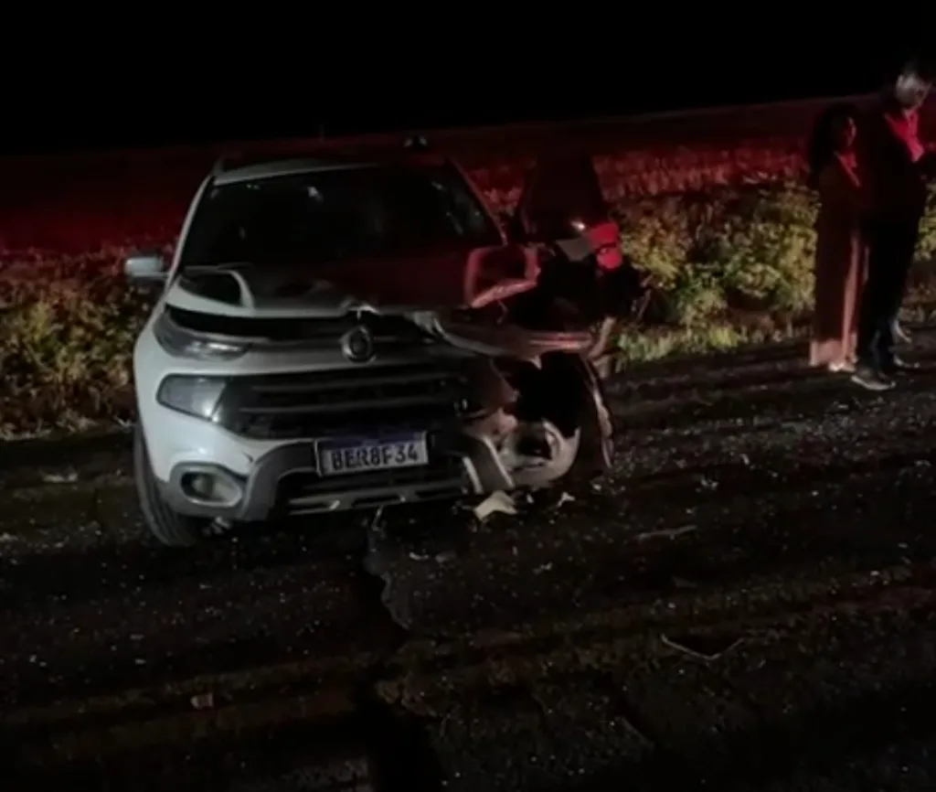 O acidente envolveu um VW Gol, com placas de Arapuã, e uma caminhonete Fiat Toro, 2020, emplacada em São Pedro do Ivaí. A batida ocorreu em reta e nível, sob tempo nublado e com chuva no momento, condição que pode ter contribuído para o acidente.
