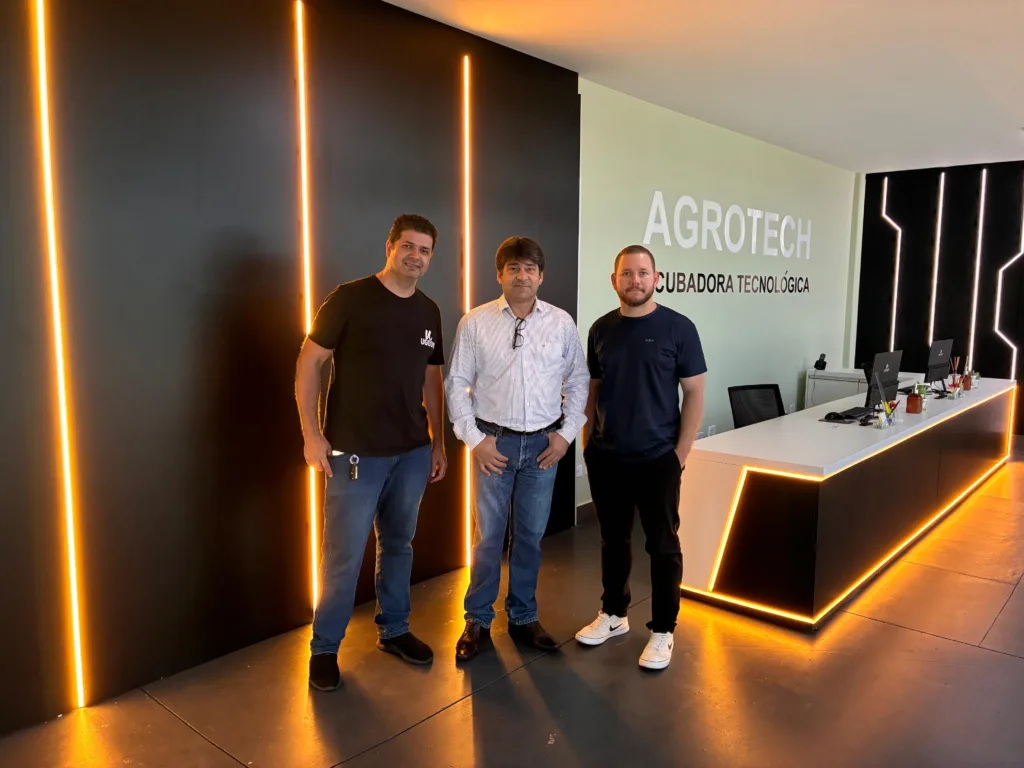 A Incubadora Tecnológica AGROTECH recebeu, no dia 27 de janeiro, a visita técnica dos diretores da empresa UGOOW, Fernando Luís de Carvalho e Rodrigo Correa Barbosa. O encontro teve como objetivo a troca de experiências, a apresentação de soluções inovadoras e o fortalecimento de possíveis parcerias voltadas ao desenvolvimento tecnológico.