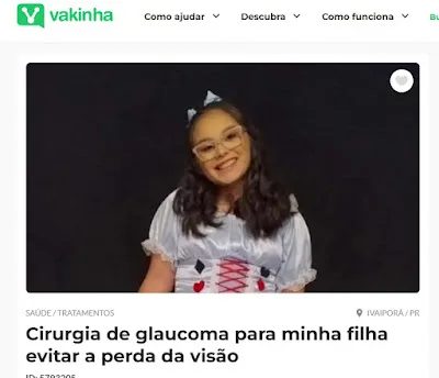 A moradora de Ivaiporã, Bruna Nayara Lima Ferreira, iniciou uma campanha solidária para arrecadar recursos destinados à cirurgia urgente da filha, diagnosticada recentemente com glaucoma, doença que causa perda progressiva e irreversível da visão. Segundo Bruna, a criança já perdeu aproximadamente 71% da visão, e o procedimento é fundamental para estabilizar o quadro e impedir que ela fique completamente cega. O valor da cirurgia é de R$ 47.400, quantia que está fora das condições financeiras da família no momento. Em apelo compartilhado nas redes sociais, Bruna pediu a colaboração da comunidade: “Pessoal, vim encarecidamente pedir ajuda de todos. Minha filha foi diagnosticada com glaucoma, ela já perdeu praticamente 71% da visão e precisamos fazer uma cirurgia urgente. Toda ajuda será muito importante para que ela não perca totalmente a visão. Deus abençoe a todos que puderem contribuir”. As contribuições podem ser feitas pela plataforma Vakinha ou via Pix diretamente para a mãe. Vakinha online: https://www.vakinha.com.br/5793205. Ainda pela Chave Pix: 01150089938 (Bruna Nayara Lima Ferreira). A família agradece qualquer apoio — seja contribuição financeira ou compartilhamento da campanha — reforçando que cada gesto faz diferença nesse momento delicado.