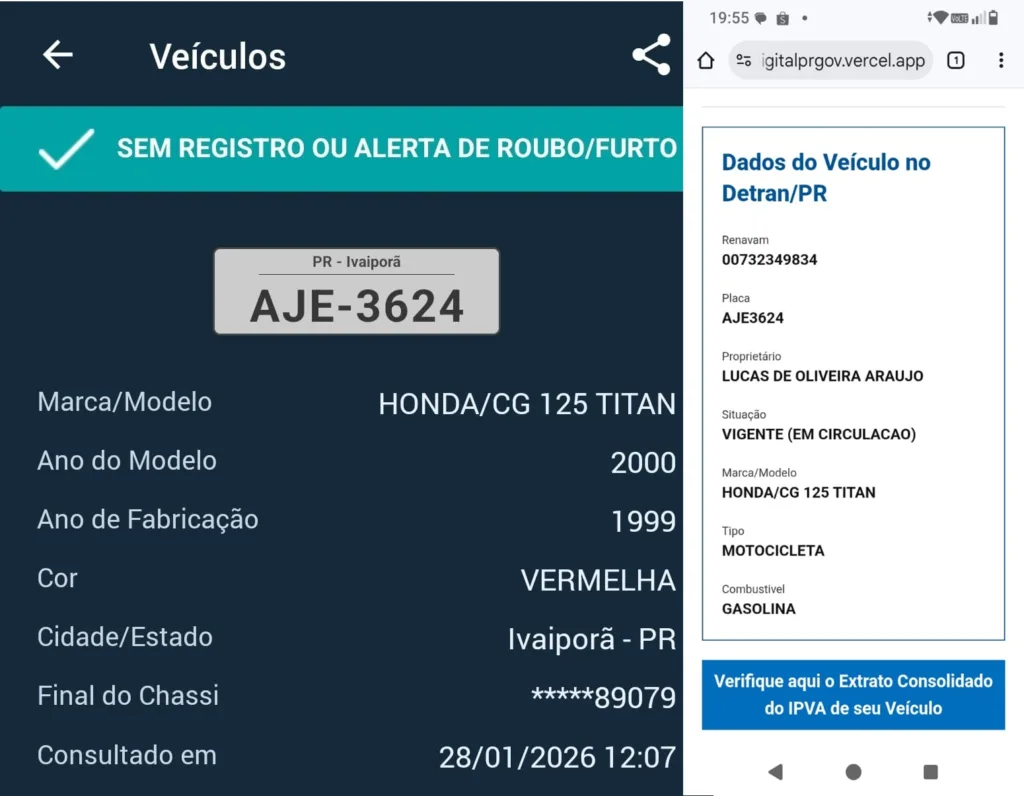O morador Lucas de Oliveira Araújo, de Ivaiporã, entrou em contato com a reportagem pedindo apoio para localizar uma motocicleta que ainda está registrada em seu nome e precisa ser transferida. Segundo ele, o veículo vem lhe causando transtornos por ainda constar em sua documentação.
