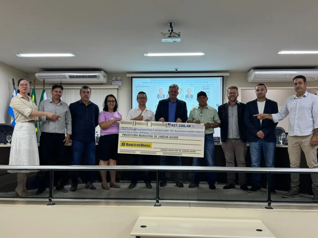 A Câmara de Vereadores de Jardim Alegre realizou a devolução de recursos ao Executivo Municipal, referente à economia feita ao longo de 2025 com o repasse do duodécimo. O valor devolvido soma R$ 427.220,48, conforme cheque apresentado durante o ato oficial.