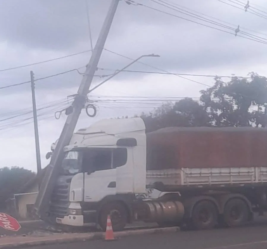 Segundo informações, uma carreta colidiu contra um poste, provocando danos materiais. Apesar do impacto, ninguém ficou ferido.