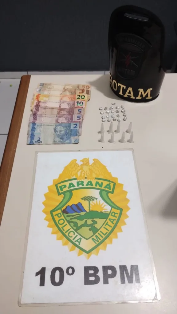 No domingo (1º), por volta de 00h30, uma equipe da Rotam registrou uma ocorrência de tráfico de drogas na Rua São Francisco, em Mauá da Serra. A ação teve início após informações repassadas pela Agência Local de Inteligência do 10º BPM, com sede em Apucarana, de que estaria ocorrendo a comercialização de entorpecentes no endereço.