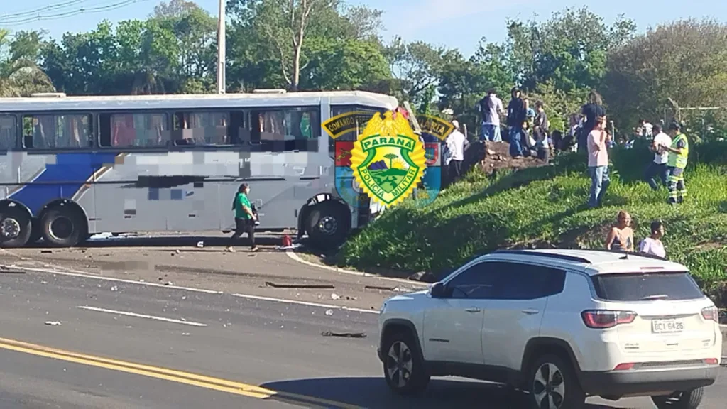 Um grave acidente foi registrado na tarde desta segunda-feira (10), por volta das 16h, no km 308 da PR-092, entre Joaquim Távora e o trevo de acesso à PR-218. A batida envolveu um ônibus Volvo B58, emplacado em Jandaia do Sul, e uma carreta Volvo FH 540, de Ponta Grossa. O motorista do ônibus, um homem de 56 anos, sofreu ferimentos e foi encaminhado ao Hospital de Joaquim Távora. A passageira, de 52 anos, também ficou ferida e recebeu atendimento na mesma unidade de saúde. Devido ao estado clínico, o teste do etilômetro não foi realizado. O condutor da carreta, um homem de 40 anos, infelizmente morreu no local. O corpo foi recolhido e encaminhado ao Instituto Médico-Legal de Jacarezinho. Segundo informações levantadas no local, a carreta seguia sentido Joaquim Távora – trevo da PR-218 quando, ao atingir o km 308 metros, acabou se envolvendo em um sinistro ainda não totalmente esclarecido com o ônibus, que cruzava a rodovia da direita para a esquerda no momento do impacto. A Polícia Rodoviária Estadual esteve no local e as circunstâncias do acidente continuam sendo apuradas.