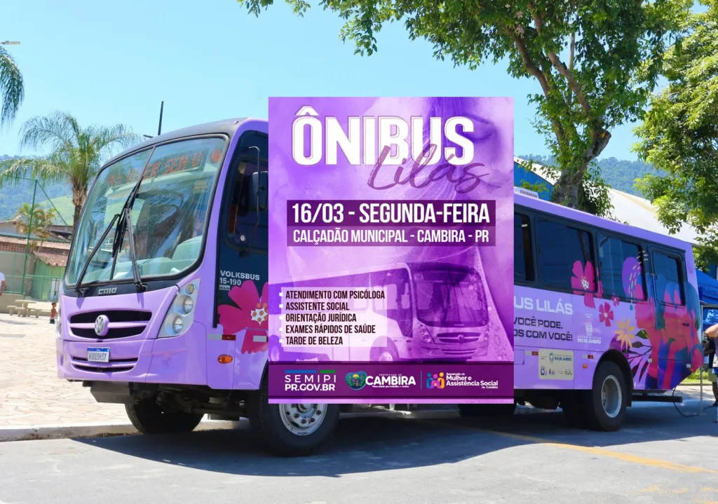O município de Cambira recebe, neste dia16 de março, a ação do Ônibus Lilás, iniciativa voltada ao atendimento, orientação e apoio às mulheres. O evento acontecerá no Calçadão Municipal, com oferta de diversos serviços gratuitos à população. A ação faz parte do Mês da Mulher.