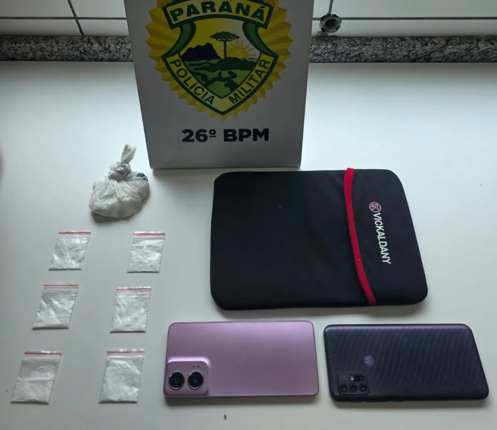 O suspeito foi identificado como o filho da acusada. Com ele foi encontrado um pote de vidro contendo 20 buchas de substância análoga à cocaína, com peso aproximado de 11 gramas. No local também foi localizada uma balança de precisão com resíduos da droga, além de um telefone celular. Durante a abordagem no bar, os policiais também encontraram com a feminina, cinco porções da mesma substância escondidas no bolso da calça, além da quantia de R$ 236 em dinheiro trocado e um celular.