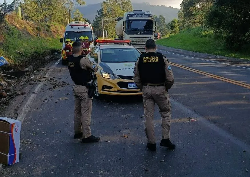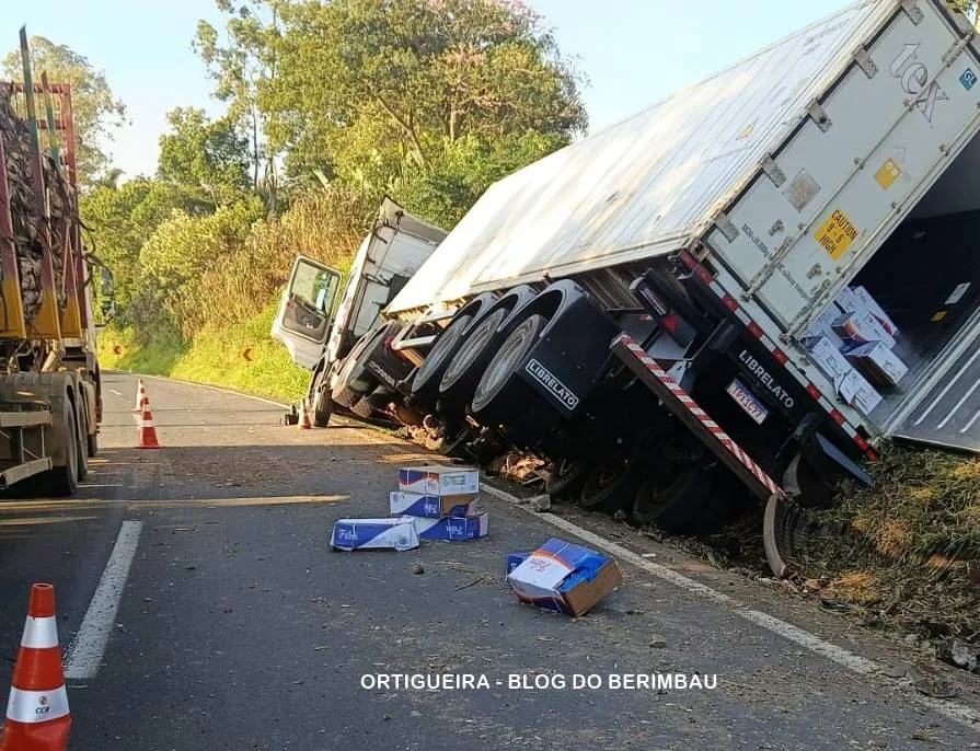 Segundo as informações apuradas, o veículo, um caminhão com placas de Xaxim-SC, tombou às margens da rodovia, ficando com o compartimento de carga escorado em um barranco. Apesar do impacto, o motorista não sofreu ferimentos.