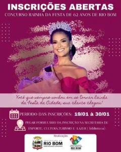 RIO BOM – Inscrições para o Concurso Rainha da Festa – 62 anos de emancipação 17 de janeiro de 2026 Ler notícia