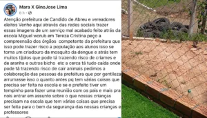 Reclamação de moradores do Bairro Tereza Cristina em Cândido de Abreu 14 de novembro de 2025 Ler notícia