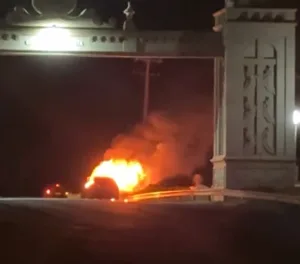 LUNARDELLI – Carro pega fogo próximo ao portal na PR-082