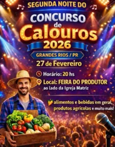 GRANDES RIOS – Segunda noite do Concurso de Calouros 2026 acontece nesta quinta-feira 25 de fevereiro de 2026 Ler notícia