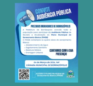BORRAZÓPOLIS – Prefeitura convida população para Audiência Pública sobre o Plano Municipal de Saneamento Básico 24 de fevereiro de 2026 Ler notícia