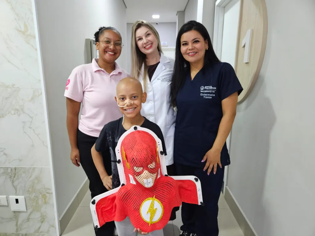 “Nosso compromisso vai além da tecnologia e da precisão do tratamento. Nosso objetivo é fornecer um atendimento humanizado, principalmente para os nossos pequenos pacientes. Pensando no bem-estar emocional, desenvolvemos uma iniciativa cheia de carinho, que é a personalização da máscara usada no tratamento radioterápico de acordo com o personagem favorito da criança. A máscara é um acessório necessário para garantir a precisão e a segurança do tratamento, e ela então ganha cores, desenhos e super-heróis. Isso contribui para reduzir o medo e a ansiedade e torna o processo mais atrativo para a criança”, afirmou Gabriela Weiss, dosimetrista da Unidade.