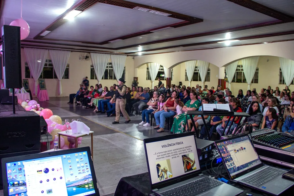 A programação teve início com uma bênção conduzida pelo padre Oscar, seguida por uma palestra ministrada por Anna Júllia Gasparetto Ravaneda, que abordou o tema “Combate à violência doméstica e familiar”, destacando a importância da informação e do fortalecimento das mulheres no enfrentamento à violência.