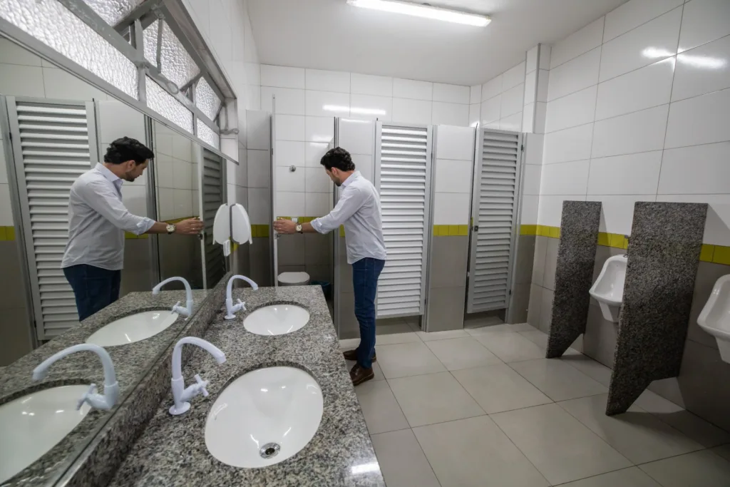A reconstrução dos banheiros teve investimento de R$ 115,7 mil em recursos municipais e garantiu acessibilidade para pessoas com deficiência.