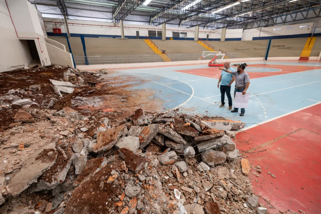 As obras começaram nesta terça-feira com a demolição do palco localizado na parte frontal da quadra, executada pela DAX Construtora Ltda., empresa vencedora do processo licitatório. A medida é necessária para a ampliação do espaço de jogo e adequação às dimensões oficiais. “Atualmente, a nossa quadra possui 18 metros de largura por 35,99 metros de comprimento. Para modalidades como o futsal e o handebol, o tamanho exigido é de 20 por 40 metros. A adequação da quadra às medidas oficiais, somada à implantação de piso modular e à instalação de 2,5 mil assentos individuais nas arquibancadas, permitirá que o ginásio volte a sediar competições oficiais”, detalhou o secretário.