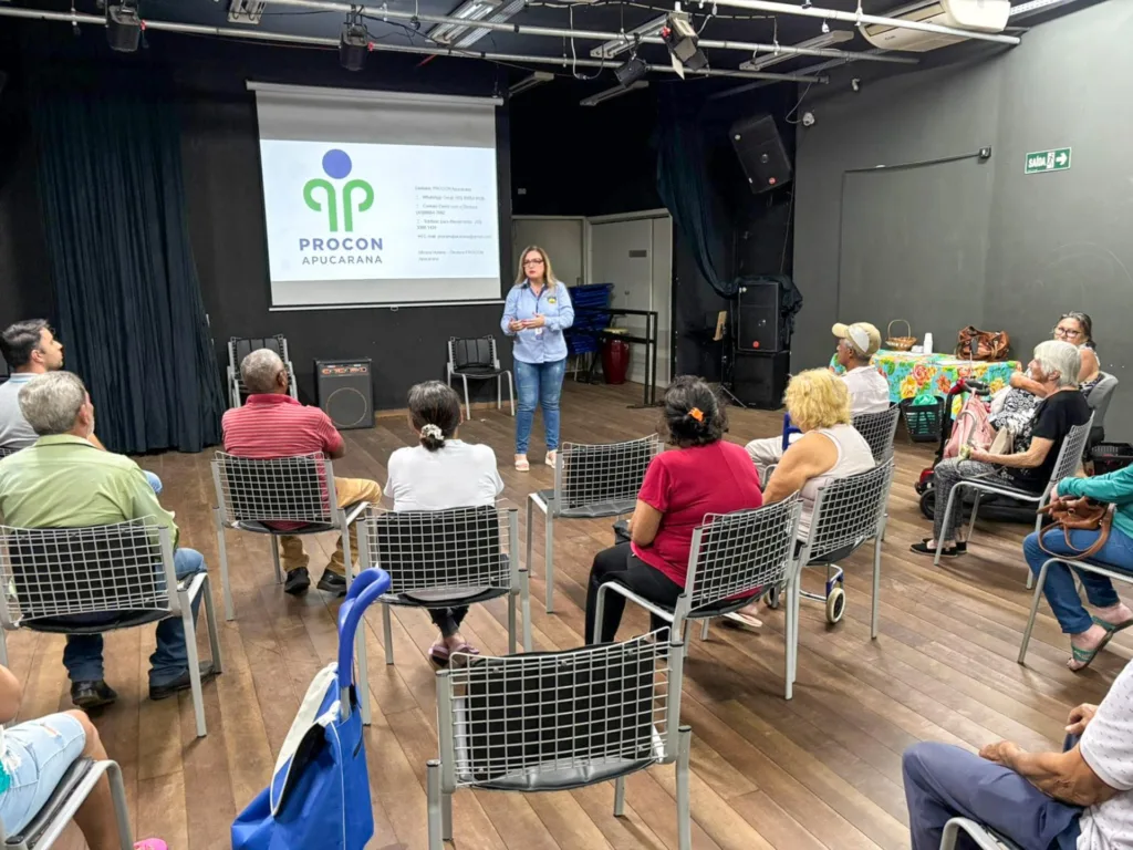 A diretora do Procon de Apucarana, Silvana Verona, conduziu a palestra e fez orientações sobre empréstimos consignados, como funcionam os principais golpes virtuais da atualidade e apresentou noções jurídicas baseadas no Código de Defesa do Consumidor (CDC), reforçando direitos e caminhos para buscar ajuda.