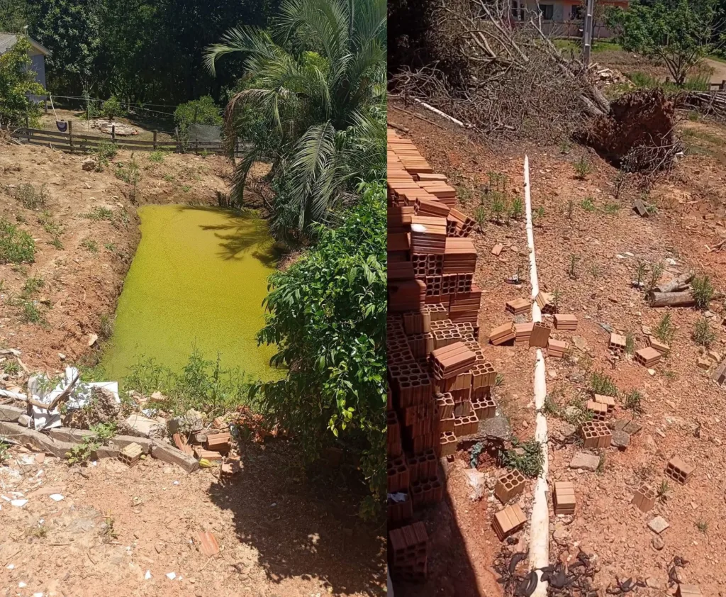 Segundo a moradora, o serviço realizado no local ficou mal-acabado e deixou pontos que oferecem risco aos alunos, desde a possibilidade de proliferação do mosquito da dengue até a presença de animais peçonhentos, como aranhas. Ela relatou que a comunidade teme acidentes, já que a cerca está danificada e o acúmulo de materiais pode facilitar a entrada de animais na área escolar.