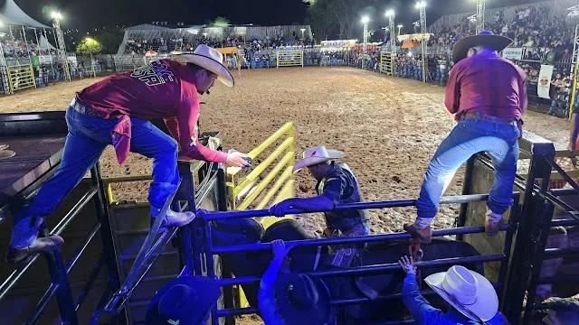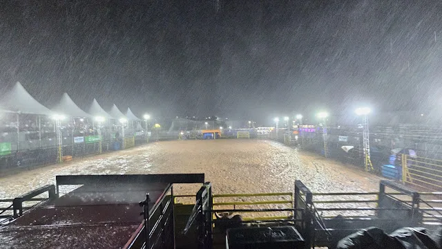 Na noite desta sexta-feira, 7 de novembro de 2025, a cidade de Cruzmaltina viveu momentos de apreensão durante a abertura da Festa do Peão, que teria rodeio em touros e cavalos e show da dupla Guilherme & Santiago. A forte chuva que caiu sobre o município acabou interrompendo o evento e provocando alguns danos estruturais. Devido ao tempo instável, a organização foi direto para as montarias em touros. As provas com cavalos foram suspensas. No entanto, antes mesmo do término das montarias nos touros, um forte temporal atingiu o local e forçou o encerramento antecipado da programação. Mesmo sob tempo nublado, o público compareceu em e arquibancadas e camarotes estavam cheios. Quando a chuva se intensificou, o público buscou abrigo nas barracas. A força do vento e da chuva arrancou alguns banners do palco, provocou infiltrações, e parte da cobertura de um camarote cedeu, causando danos materiais, mas sem feridos. Por motivos de segurança, o som foi desligado, e o show de Guilherme & Santiago, que estava prestes a começar, foi cancelado. O prefeito Maurício Bueno e o empresário Nilton Macario informaram que uma nova data será agendada. Cogitou-se a apresentação no domingo, porém a dupla já tinha agenda marcada em Goiás no sábado, o que inviabilizou o replanejamento imediato. Apesar do contratempo, a organização reforçou que a programação segue e que novas informações sobre o show de Guilherme & Santiago serão divulgadas em breve.